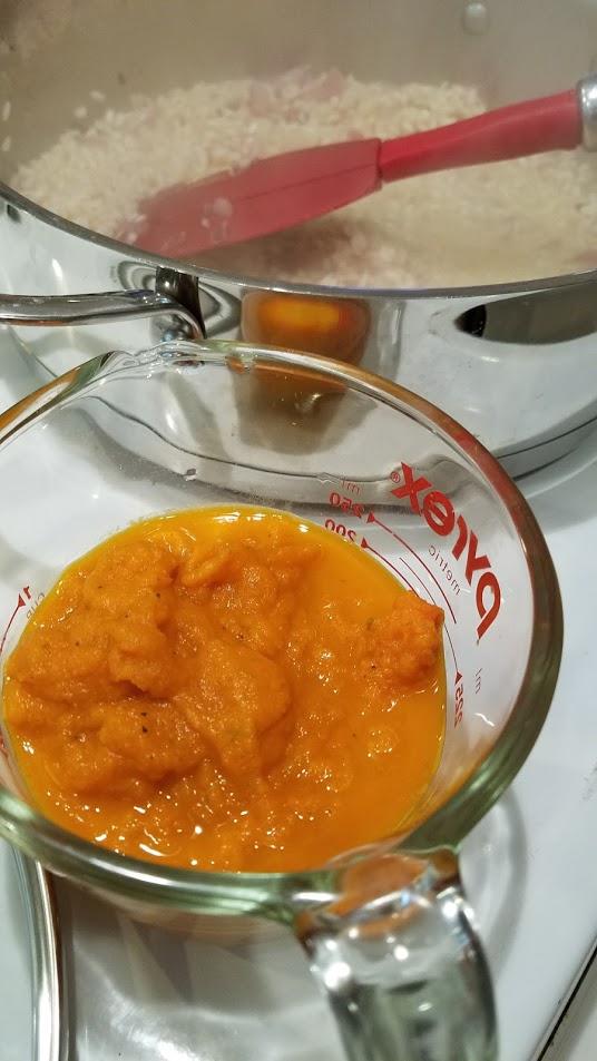 - Continue until risotto is nicely coated with onions and garlic. (About 1/2 min)