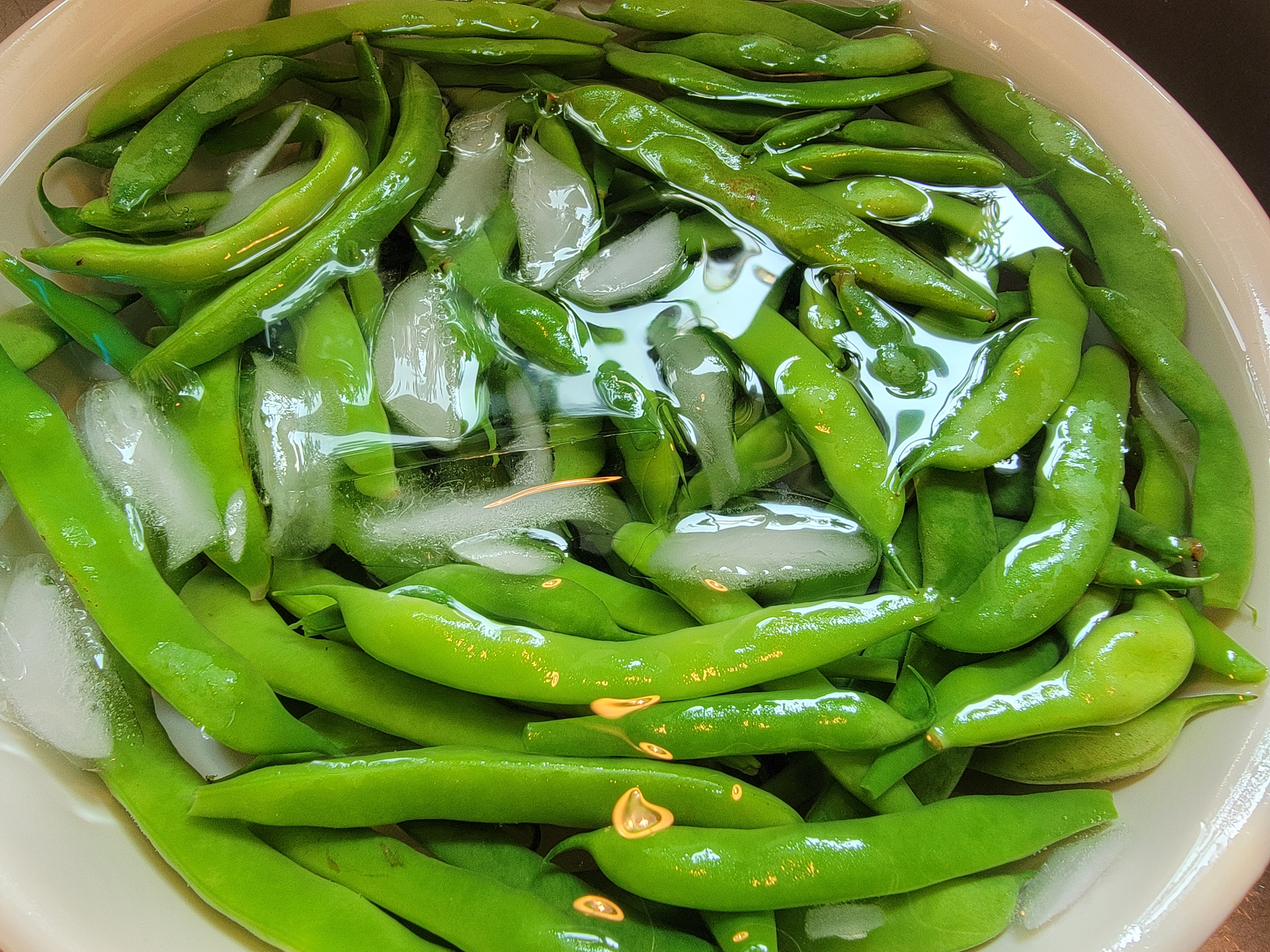 - Clean and Blanch your Beans wash your beans and snap or trim the ends. Once cleaned, prep a large pot of boiling water. Toss your beans in. Set a timer for 90 seconds. Transfer beans to a sink of Ice water. They will turn a vibrant bright green and the cold water will stop the cooking process.